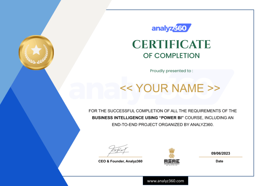 Yes, Once you complete the course and projects, you’ll receive a Power BI Course Completion Certificate that you can proudly add to your resume and LinkedIn profile.